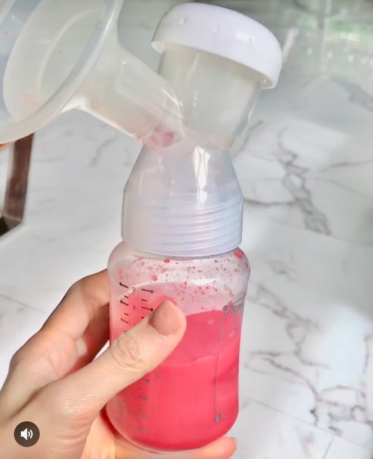 Terlihat dari botol pompa yang ditunjukkan dalam instagram miliknya itu, setengah botol ASI berwarna merah. Mengetahui kejadian tersebut, Panward pun memeriksakannya kepada dokter.